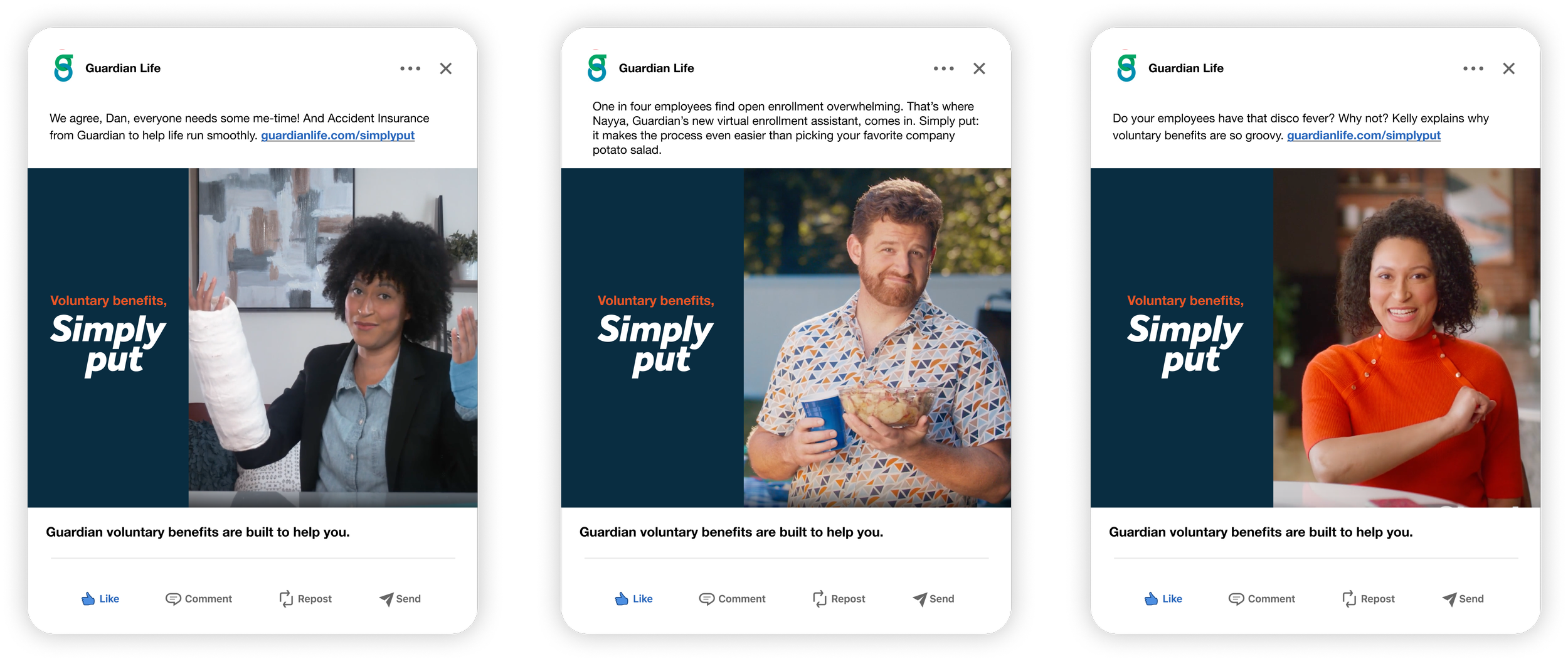 Simply Put has accumulated millions of views with engagement rates nearly double industry benchmarks. As a result, it has significantly increased broker and employer awareness of Guardian’s innovative voluntary suite, while also contributing to lifting participation in other adjacent Guardian programs.